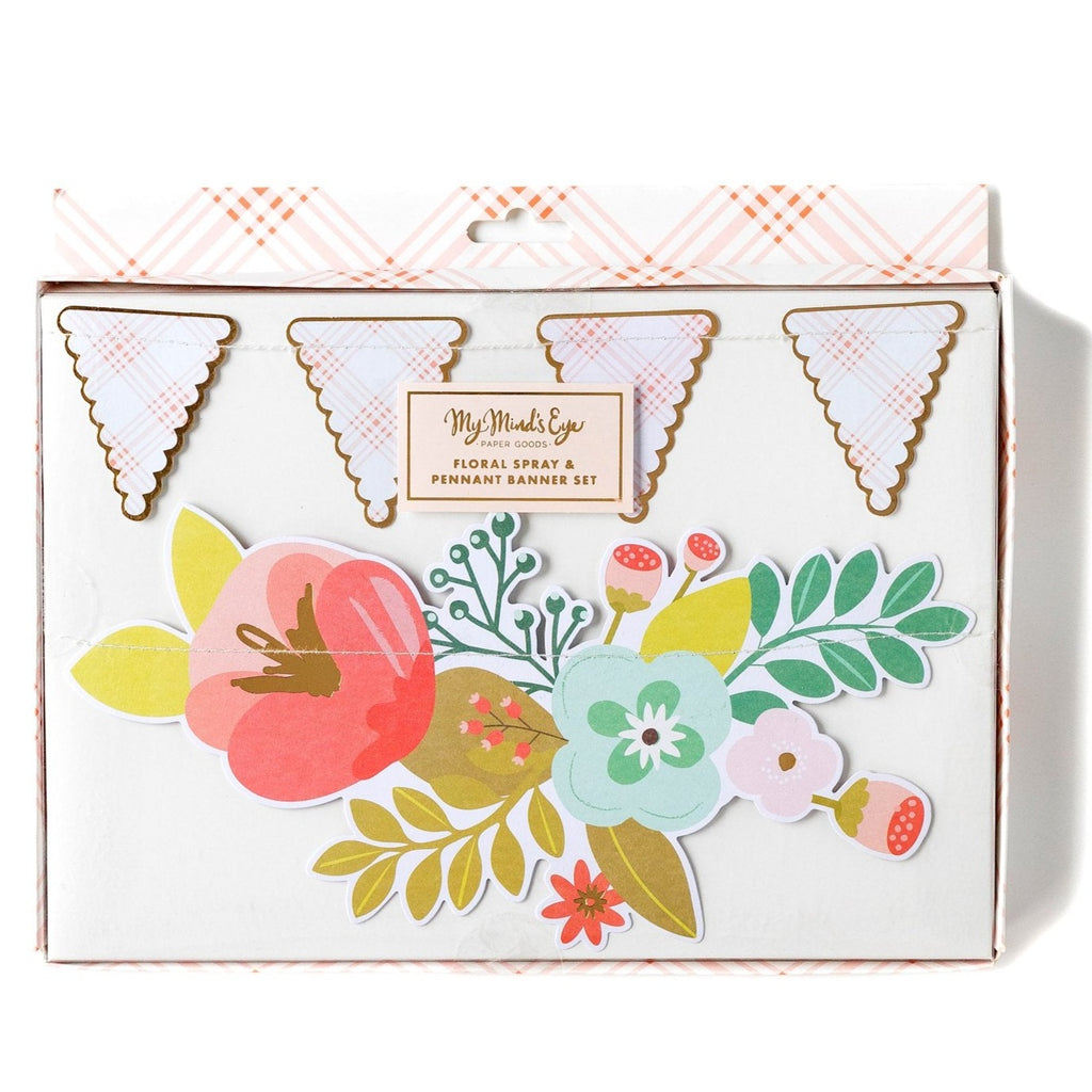 Welcome spring with this cheery mini banner set. The bright pastel floral banner will remind you of the fresh new blossoms outside. The springtime gingham pennant banner will brighten any celebration space. This banner set is the perfect pretty accent to a garden party bridal shower. These banners with our spring party fans will make your Easter brunch or baby shower the place to be!